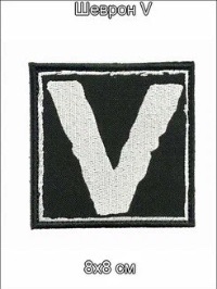 Шеврон V на липучке, 8×8 см №507 Рекомендуем купить шеврон V не только для одежды, но и для аксессуаров, включая амуницию и снаряжение. Представленный квадратный шеврон черного цвета содержит вышитый символVшелковыми нитями белого цвета.